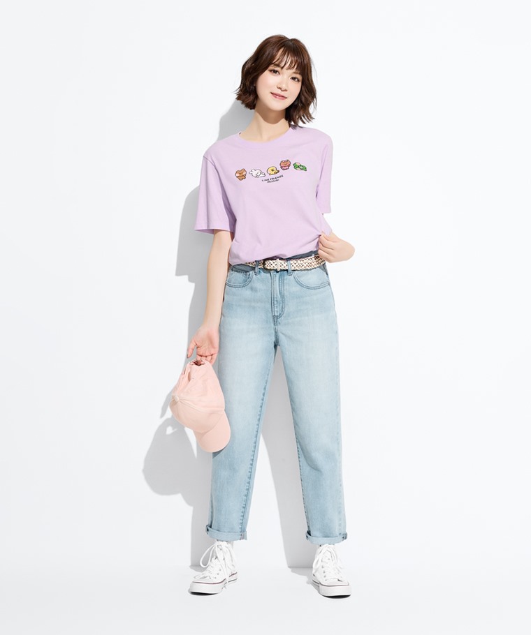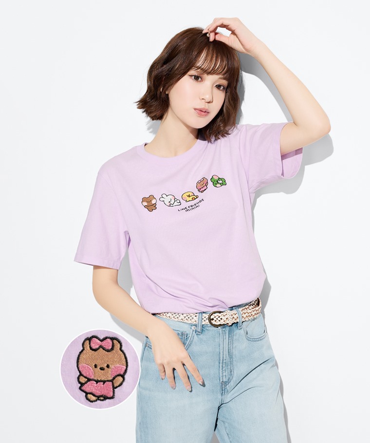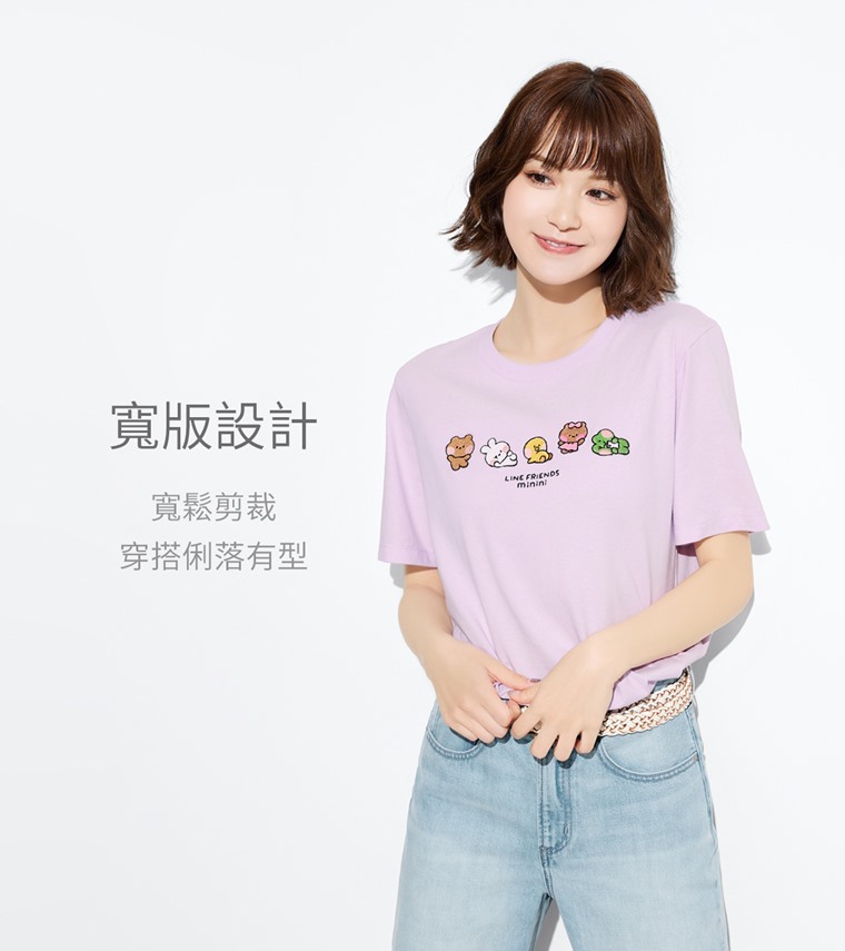 LINE FRIENDS minini寬版電繡T恤-04-女(淡紫-S)
