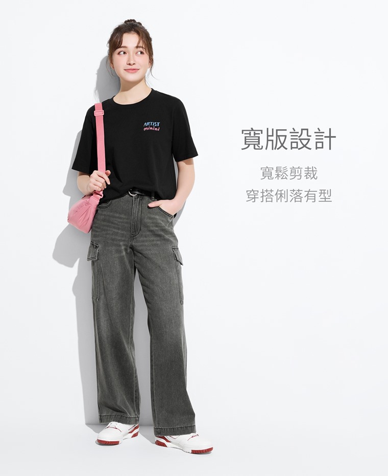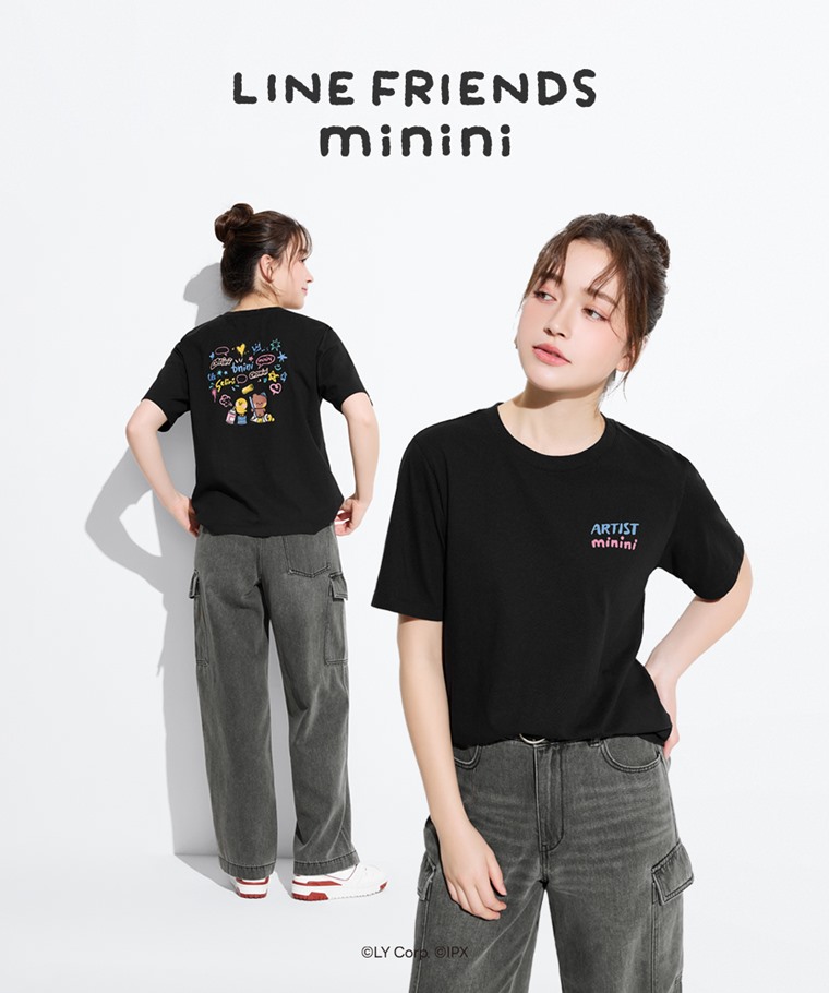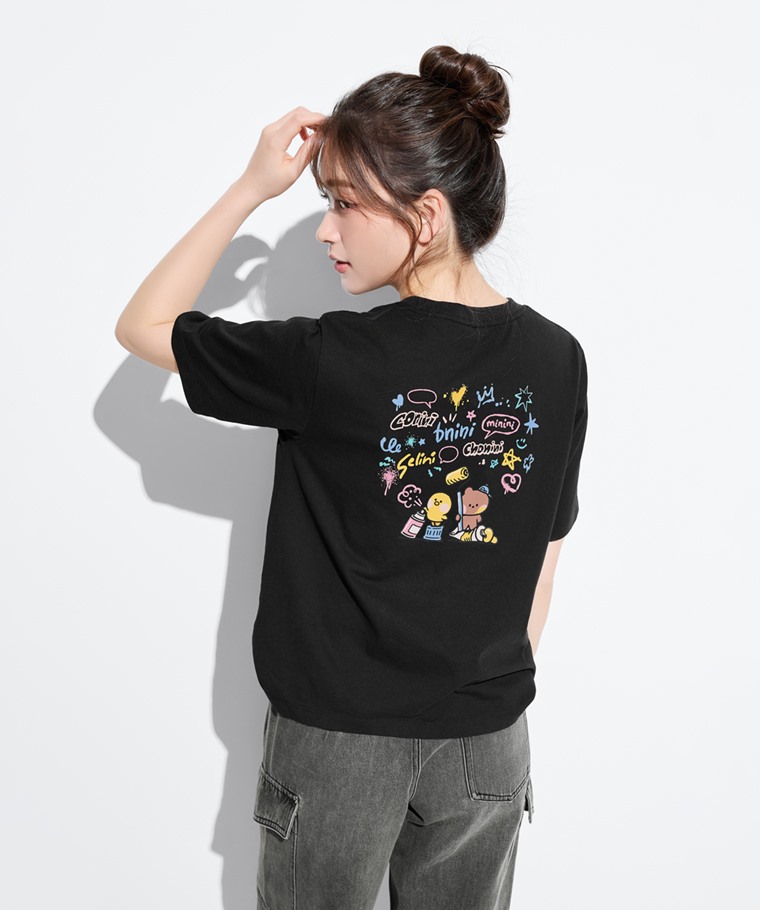 LINE FRIENDS minini寬版印花T恤-05-女(黑色-S)