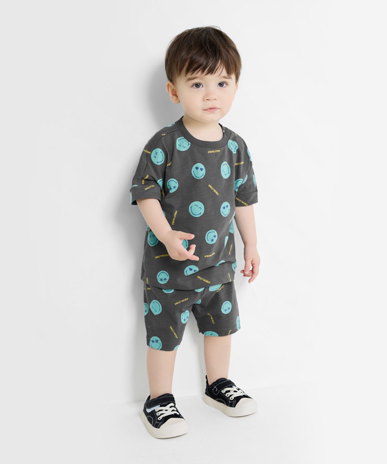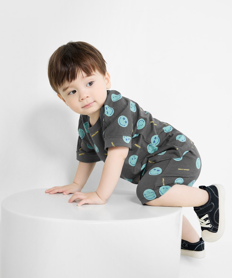 SmileyWorld®竹節棉印花短褲-Baby(深藍-70)