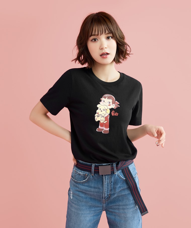 PEKO & POKO厚版印花T恤-06-女(黑色-S)