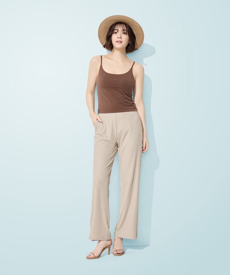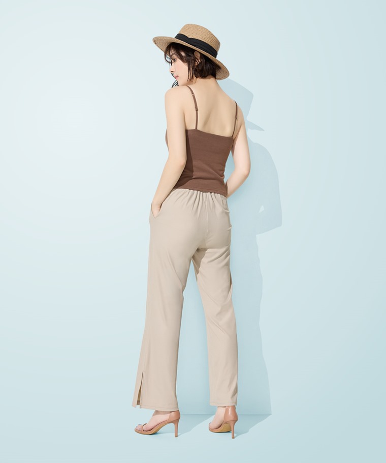輕涼羅紋側開衩長褲-女(淺卡其-S)