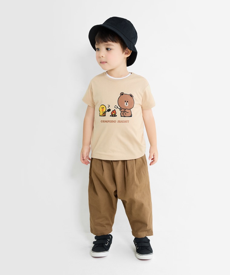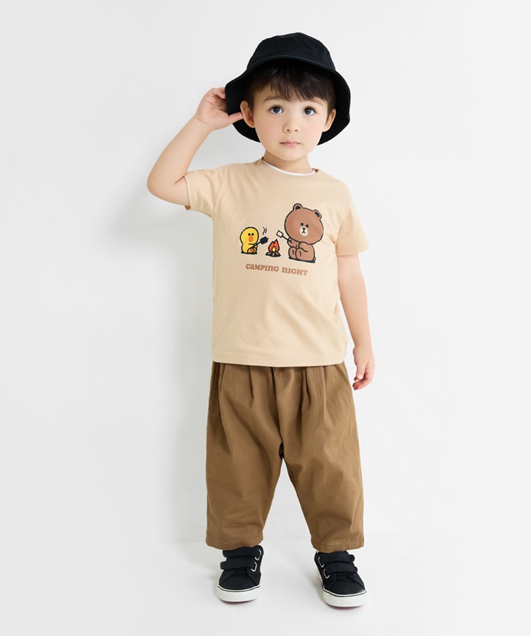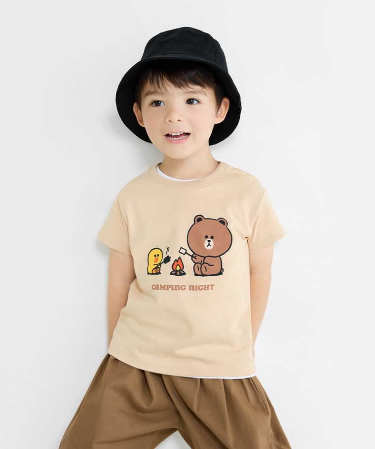 LINE FRIENDS印花T恤-02-童(淺卡其-110)