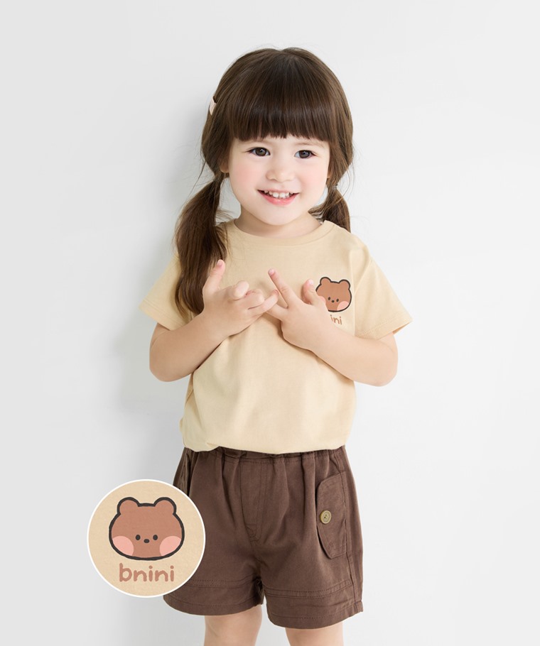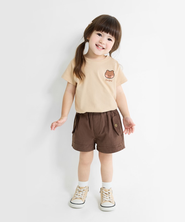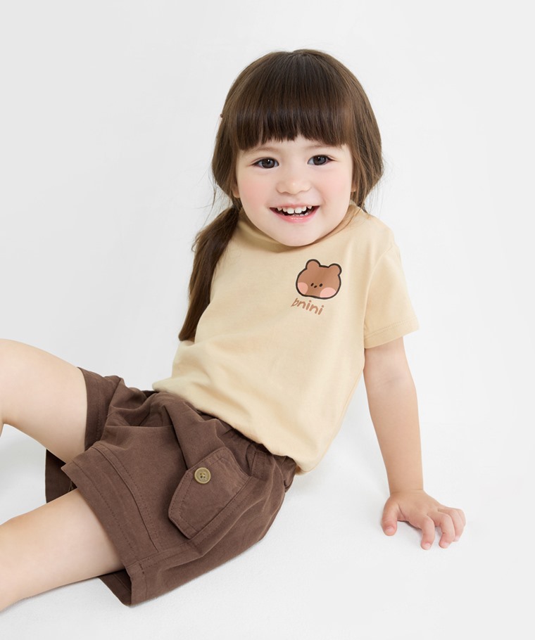 LINE FRIENDS minini印花T恤-01-童(淺卡其-110)