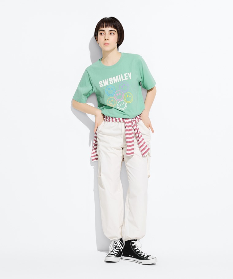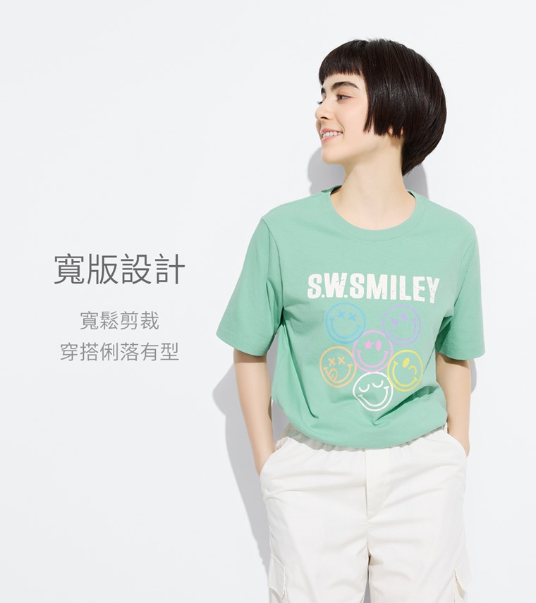 S.W.SMILEY®寬版印花T恤-06-女(淺湖綠-S)