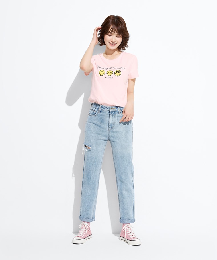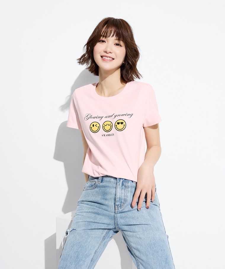 S.W.SMILEY®印花T恤-08-女(淺粉-S)