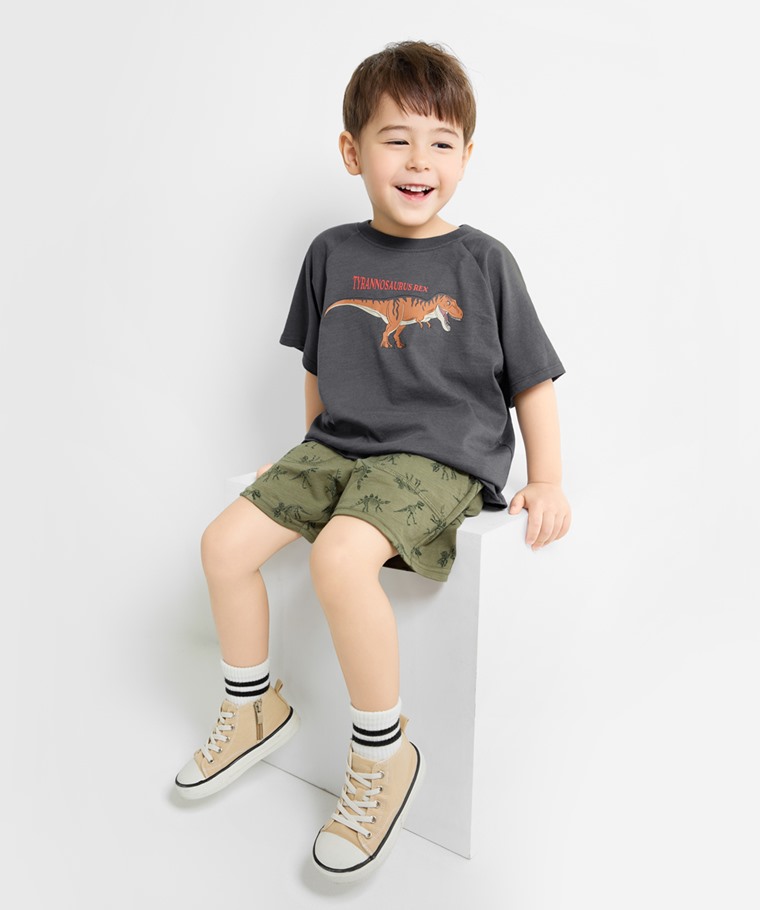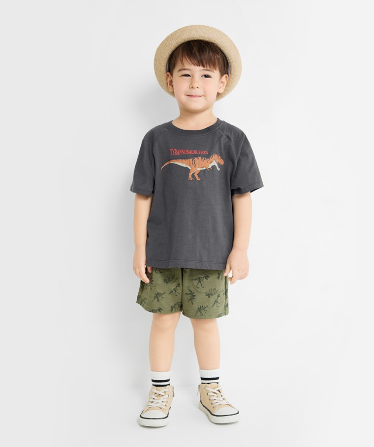 竹節棉恐龍印花口袋短褲-童(藏青-150)