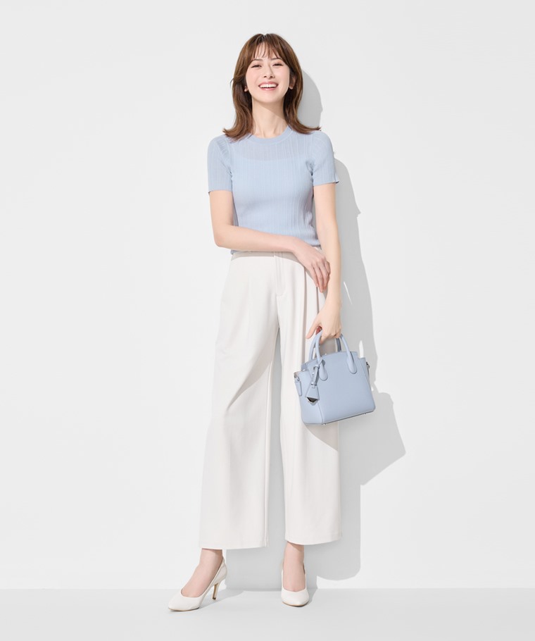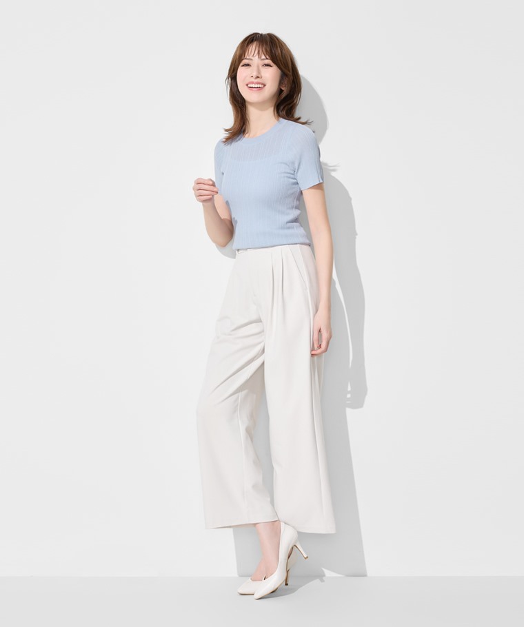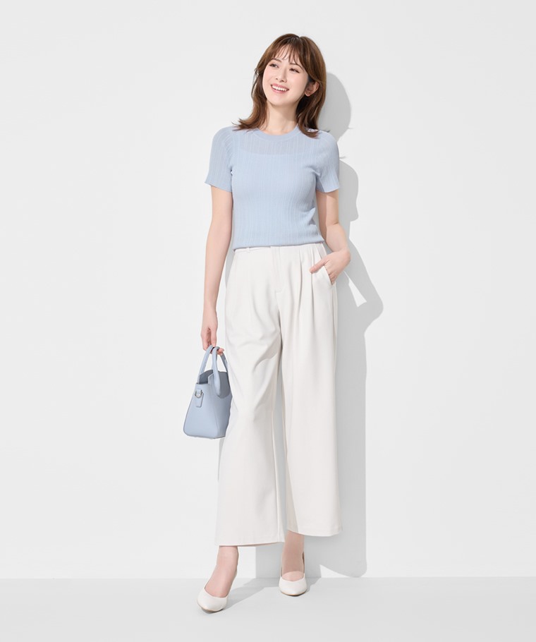透膚羅紋針織短袖上衣-女(粉藍-S)